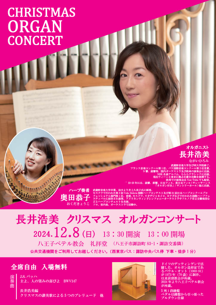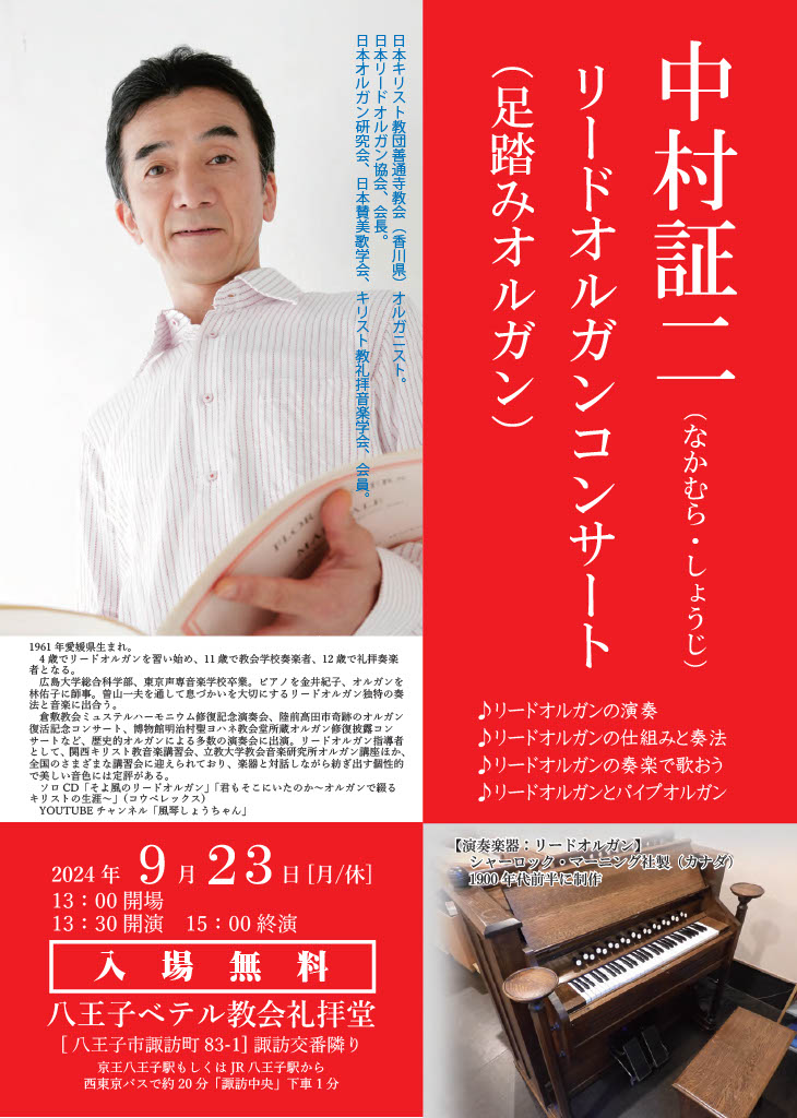 2020年12月に現在の八王子市諏訪町に教会堂を建築し、日曜日の礼拝を中心にした活動を行っています。また人の心を癒し、神を賛美する楽器として、2024年に教会堂に小型パイプオルガンを設置して礼拝で用いています。